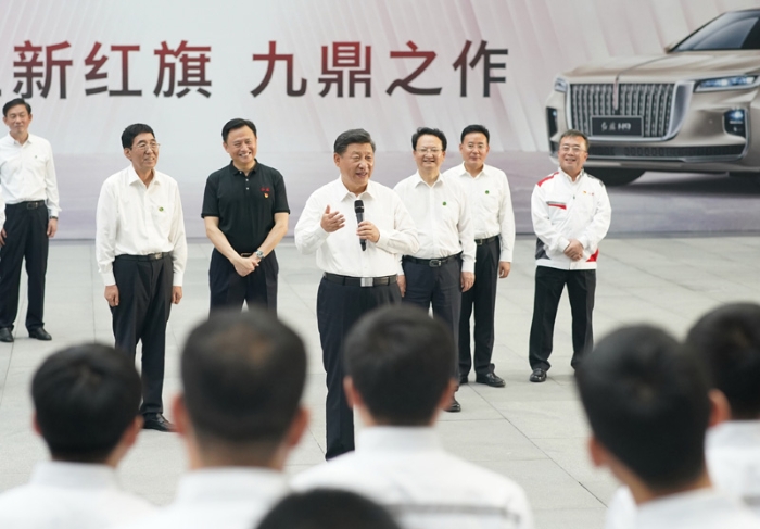 企业展厅里,习近平察看了最新款式的整车产品,了解集团创新驱动、体制机制创新、产业结构优化升级情况,并同职工代表简短交流。他强调,推动我国汽车制造业高质量发展,必须加强关键核心技术和关键零部件的自主研发,实现技术自立自强,做强做大民族品牌。当今世界制造业竞争激烈,要抢抓机遇,大力发展战略性新兴产业,实现弯道超车。希望大家发愤图强、不负韶华,在推动东北振兴中奉献聪明才智,在实现中华民族伟大复兴中国梦的进程中书写壮丽的青春华章。