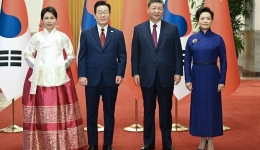 1月5日上午,国家主席习近平在北京人民大会堂会见来华进行正式访问的爱尔兰总理马丁。