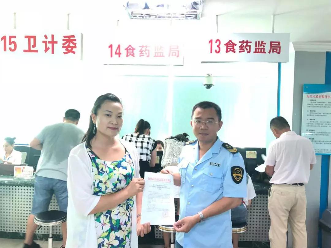 9月3日,海口市食品药品监督管理局审批办工作人员将一份盖着鲜红印章的药店筹建批复递给申办人常女士。这标志着海口市新开办零售药店的筹建许可办理时限由10个工作日正式缩减为1个工作日。