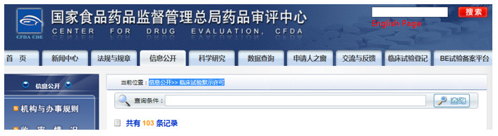 现在热点栏目中的“临床试验默示许可公示”变成了“临床试验通知书查询“,里面名字仍然是”临床试验默示许可“(列表中的受理号并不按公示时间显示)。