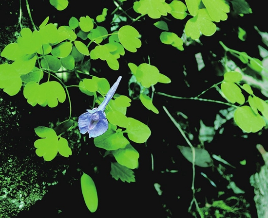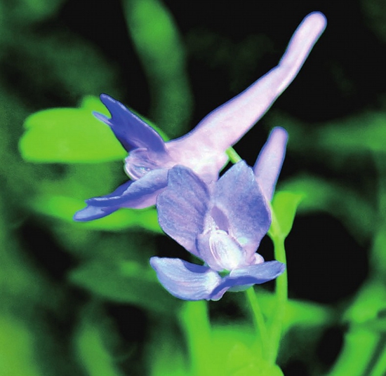 总状花序顶生,疏生3~15花;苞片卵形或狭卵形,全缘或下部具齿;花冠红紫色;外花瓣宽展,具齿,顶端微凹,具短尖;上花瓣长1.5~2.2厘米,瓣片与距常上弯;距圆筒形;蜜腺体贯穿距长的1/2。蒴果线形。种子扁长圆形,黑色。花期3~4月,果期4~5月。