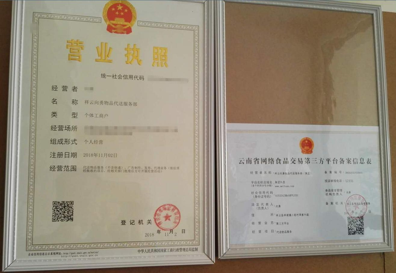图为云南省网络食品交易第三方平台备案信息表(右)