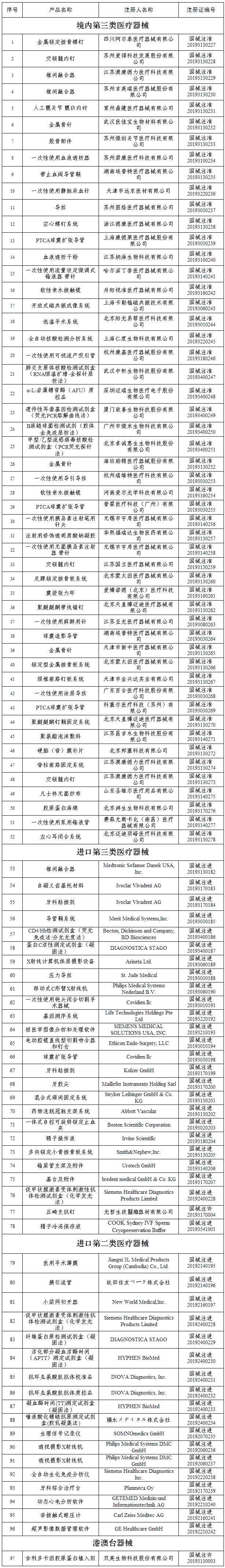 2019年4月,国家药品监督管理局共批准注册医疗器械产品97个。其中,境内第三类医疗器械产品52个,进口第三类医疗器械产品26个,进口第二类医疗器械产品18个,港澳台1个(具体产品见附件)。