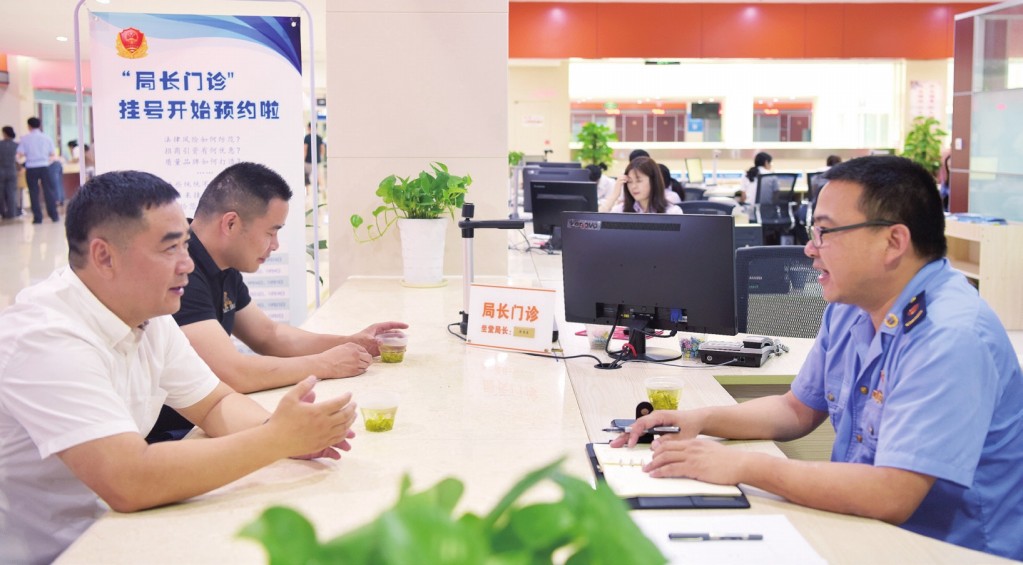 7月1日上午,宁波市奉化区溪口美容美发协会负责人葛挺来到区行政服务中心商事登记区,想咨询企业如何在经营管理中防范法律风险。没想到,接待他的是奉化区市场监管局局长陈晨磊。原来,他赶上了“局长门诊”。