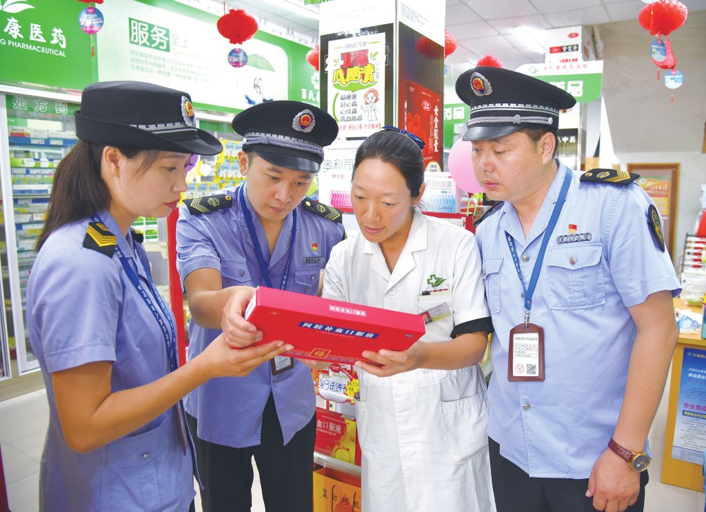 图为该局执法人员在一家药店检查。韩吴琦 摄