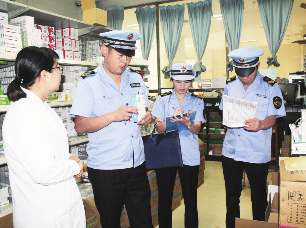 图为执法人员在县中心医院药房检查。任国轩 摄