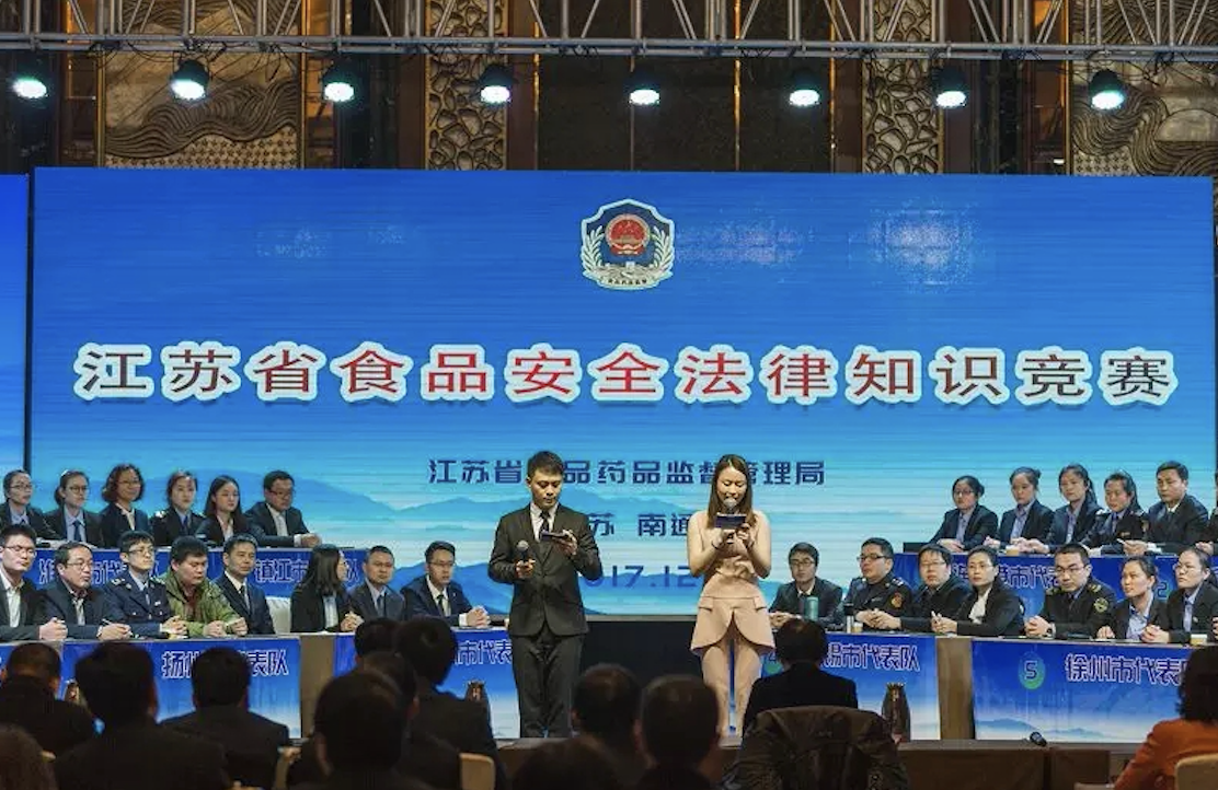 2017年12月26日,江苏省食品安全法律知识竞赛决赛在南通圆满落幕。此次全省食品安全法律知识竞赛于今年9月份启动,历时3个月。各级食品药品监管部门精心组织,层层选拔,最终选拔出13支参赛队伍进入决赛,选手涵盖食品安全执法、食品生产经营企业、食品行业协会和消费者等不同领域。决赛分为闭卷笔试、现场答题和案例答辩三个环节,经过有问必答、争分夺秒、奋勇争先、步步为赢的激烈角逐,共产生团体一等奖1名、团体二等奖2名、团体三等奖3名、团体优胜奖7名,以及4个领域个人单项奖。最终,丁强、周佳佳、邱洪冰、李国库等12位参赛选手获得了食品安全执法人员、食品生产经营企业、食品行业协会和消费者个人奖项,徐州市代表队获得团体一等奖,泰州市、苏州市代表队获得团体二等奖,南京市、连云港市和盐城市代表队获得团体三等奖。