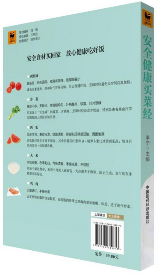 中国医药科技出版社特邀北京协和医院营养专家李宁编写,推出了《安全健康买菜经》一书。本书以最简练的挑选方法、储存方法、食材处理和营养搭配为主要内容,并对大家关心的食品安全问题和相关谣言给出了科学的分析,是一本有效、实用、接地气的买菜指南。本书在全国新华书店以及天猫、京东、当当、亚马逊等各大网站受到广大读者的喜爱和好评。