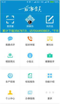 该APP具备三大功能,一是公众监督功能。公众在食品药品消费过程中,如发现问题,可点击"手机拍照"选项,用手机将"证据"保存下来,该系统能够自动记录所拍照片的时间、地点及经度、纬度,再点击"投诉举报"界面,举报证据将通过该系统直接提交至食品药品监督管理局"12331投诉举报中心"。同时,公众可以通过该平台用手机查看餐饮单位后厨操作情况,对餐饮单位进行点评监督;二是便民服务功能。公众可以在购买药品前查询该药品哪家药店有售,并通过该软件查验药品检验合格报告。另外,公众也可以通过该平台了解食品药品质量公告、办事服务指南、健康提示等信息。三是便捷监管。监管人员利用平台直接扫描商品条形码或药品电子监管码,就可查询食品药品质量和来源,也可以及时追溯定位、迅速控制问题产品,提升监管部门风险监测和预警能力。