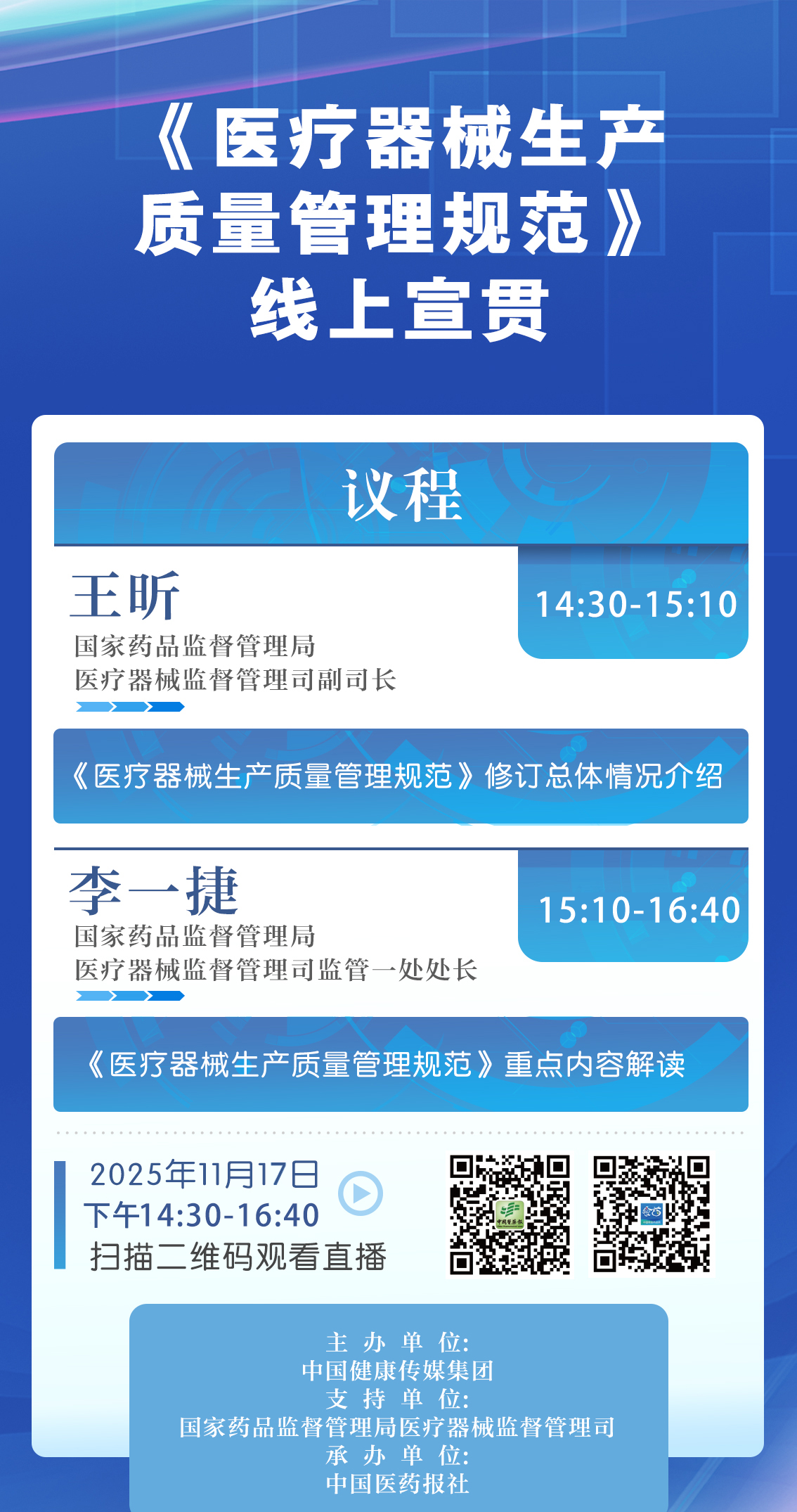 直播预告|11月17日《医疗器械生产质量管理规范》线上宣贯